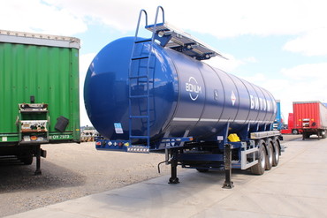 Предлагаем к поставке битумовоз 30 м3, Цилиндрического сечения, с волногасителями, сталь 09Г2С, 4 мм. Изоляция фольгированный IZOVER 150 мм, обшивка - оцинкованная сталь с полимерным покрытием. Востановленные Оси BPW (12 тонн), пневматическая подвеска, передняя подъемная ось тормозная система барабанного типа, Wabco 2S/2M, система ABS. Жаровочная труба, дизельная горелка.