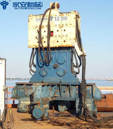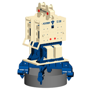 Сдвоенный гидравлический вибропогружатель YZ-300×2 – это очень эффективный вибропогружатель, который может забивать крупные сваи в мостах и других крупных фундаментных проектах.