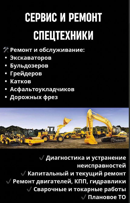 🛠️ Ремонт и обслуживание: ▪ Экскаваторов ▪ Бульдозеров ▪ Грейдеров ▪ Катков ▪ Асфальтоукладчиков